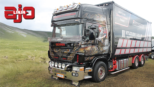 Riikosen kuvittama Scania 164 vuodelta 2002 on rakennettu huolella ja siitä on pidetty hyvää huolta, ikä ei näy. Sellainen on Tynjälän entinen V8-Scania, joka jatkaa elämäänsä hyvissä käsissä Saarijärvellä.
