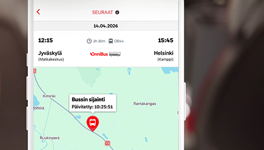 OnniBus on ottanut käyttöön uuden ominaisuuden, jonka avulla yhtiön busseja voi seurata reaaliaikaisesti kartalla. Ominaisuus on käytettävissä sekä OnniBussin verkkosivuilla että mobiilisovelluksessa.