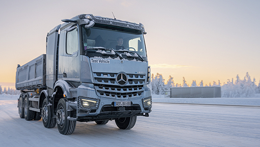 Mercedes-Benzillä on Rovaniemellä kuorma-autojen testauskeskus, jossa on tällä kertaa ollut talvitesteissä sähköinen nmaansiirtäjä Mercedes-Benz eArocs 400. Ja hyvin on tietysti mennyt, kun äänessä on tehtaan edustaja.