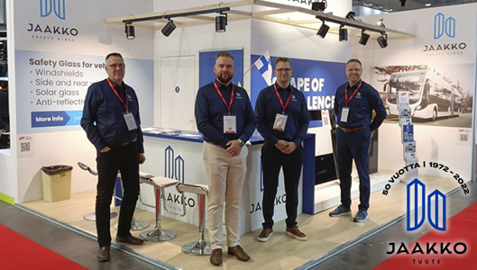 Suomalainen Jaakko-Tuote Oy esitteli Brysselin Busworld-näyttelyssä uuden keinoäly-bussilasin. Se muttuu läpinäkyvästä läpinäkymättömäksi ja takaisin toivomuksen mukaan.