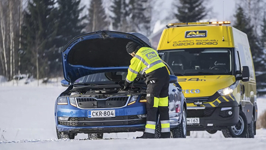 Suurin osa Autoliiton tiepalvelun avustuksista kylmillä keleillä liittyy 12 voltin käynnistysakun ongelmiin. Kuva: Autoliitto