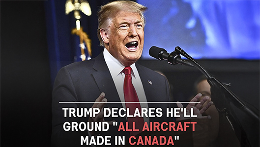 Trump mainitsi erityisesti Global Expressin, Quebecilaisen Bombardierin valmistaman liiketoiminta-lentokoneen, sekä “kaikki Kanadassa valmistetut lentokoneet”.