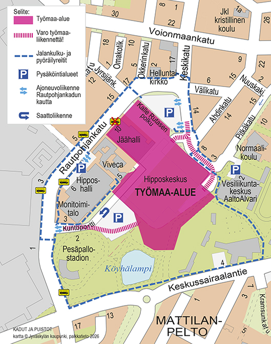 Jyväskylän Hippoksen jääurheilukeskuksen rakentaminen muuttaa alueen liikennejärjestelyjä