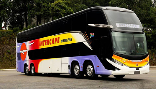 Etelä-Afrikan markkinoille suunniteltu Marcopolo on kehittänyt maailman ensimmäisen neliakselisen kaksikerrosbussin.