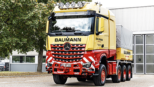 Saksalainen erikoiskuljetusyritys Baumann hankki Mercedes-Benz Arocs SLT 4463 AS 8x6 lavettiveturin, jonka suurin vetomassa on 1 000 tonnia. Muunnostyö tehtiin Ranskassa Molsheimin tehtaalla ja yhteistyökumppani Paulilla.