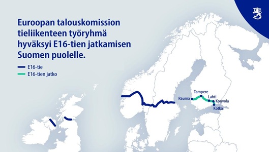 Tasavallan presidentti hyväksyi 3.10.2025 kansainvälisen sopimuksen muutoksen, jolla Eurooppatie 16 eli E16-tietä voidaan jatkaa Suomen puolelle. Liikenne- ja viestintäministeriö on käynnistänyt säädöshankkeen, jolla E16-tien jatkaminen saatetaan kansallisesti voimaan.