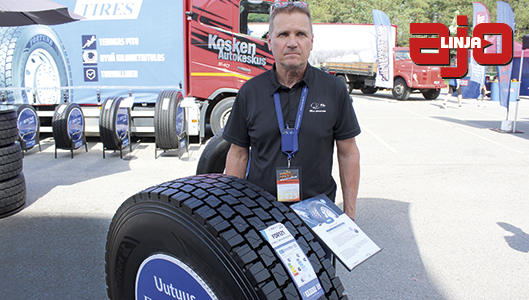 Scasonin Jyrki Alikeskikylä ja 315/80R22.5-koon Fortune FDR121-rengas, jonka kuormitusluokka on 156/150L. Sama pätee myös 70-sarjalaiseen.