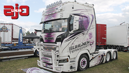 Suhosen Scania on nähty menneenä kesänä monessa rekkanäyttelyssä. Kuva on Power Truck Show:sta.